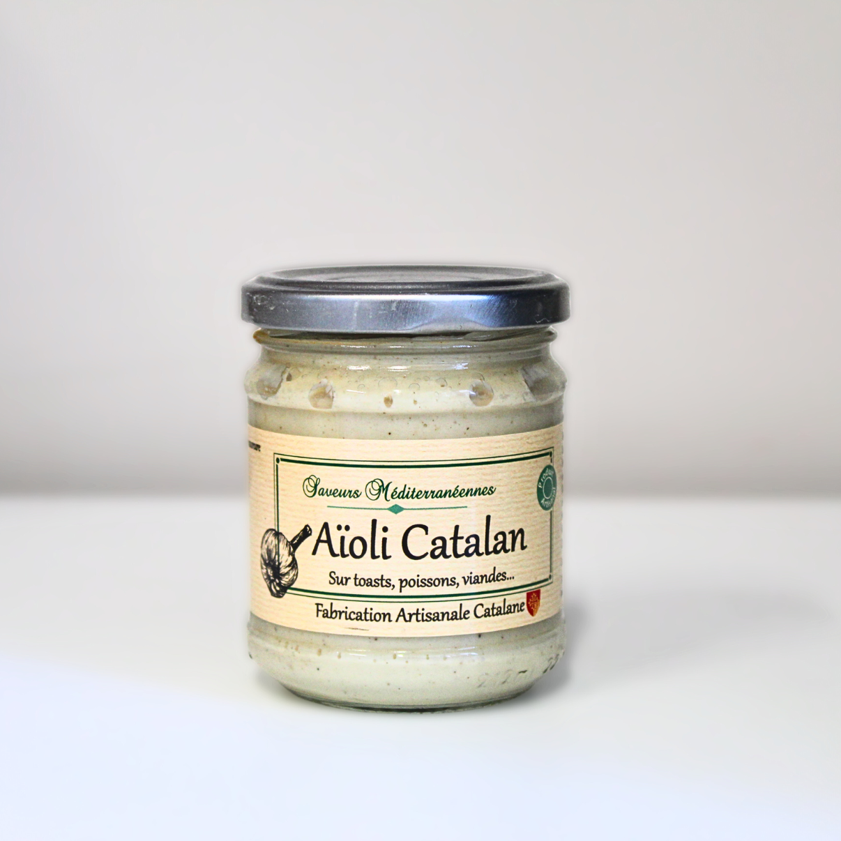Plongez dans l’authenticité de la cuisine catalane avec cet Aïoli Catalan, une préparation crémeuse et savoureuse à base d'huile d'olive et d'ail, fabriquée artisanalement à Elne. Une véritable explosion de saveurs catalanes à chaque bouchée !